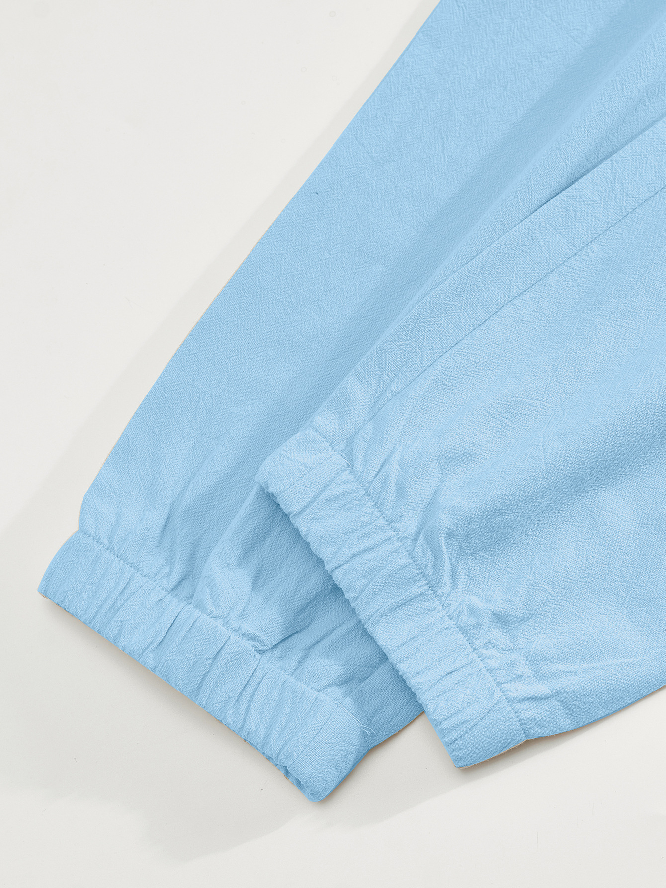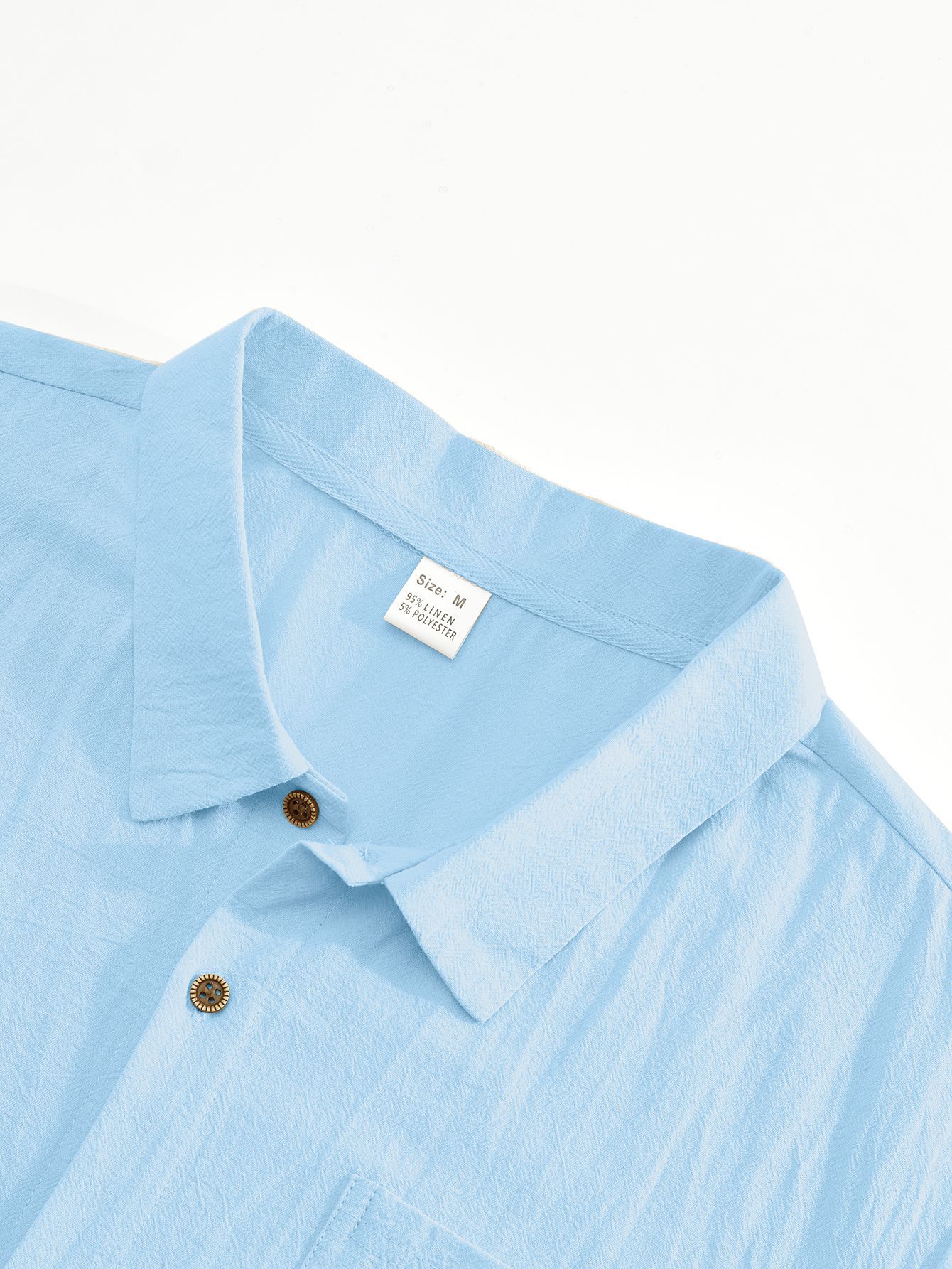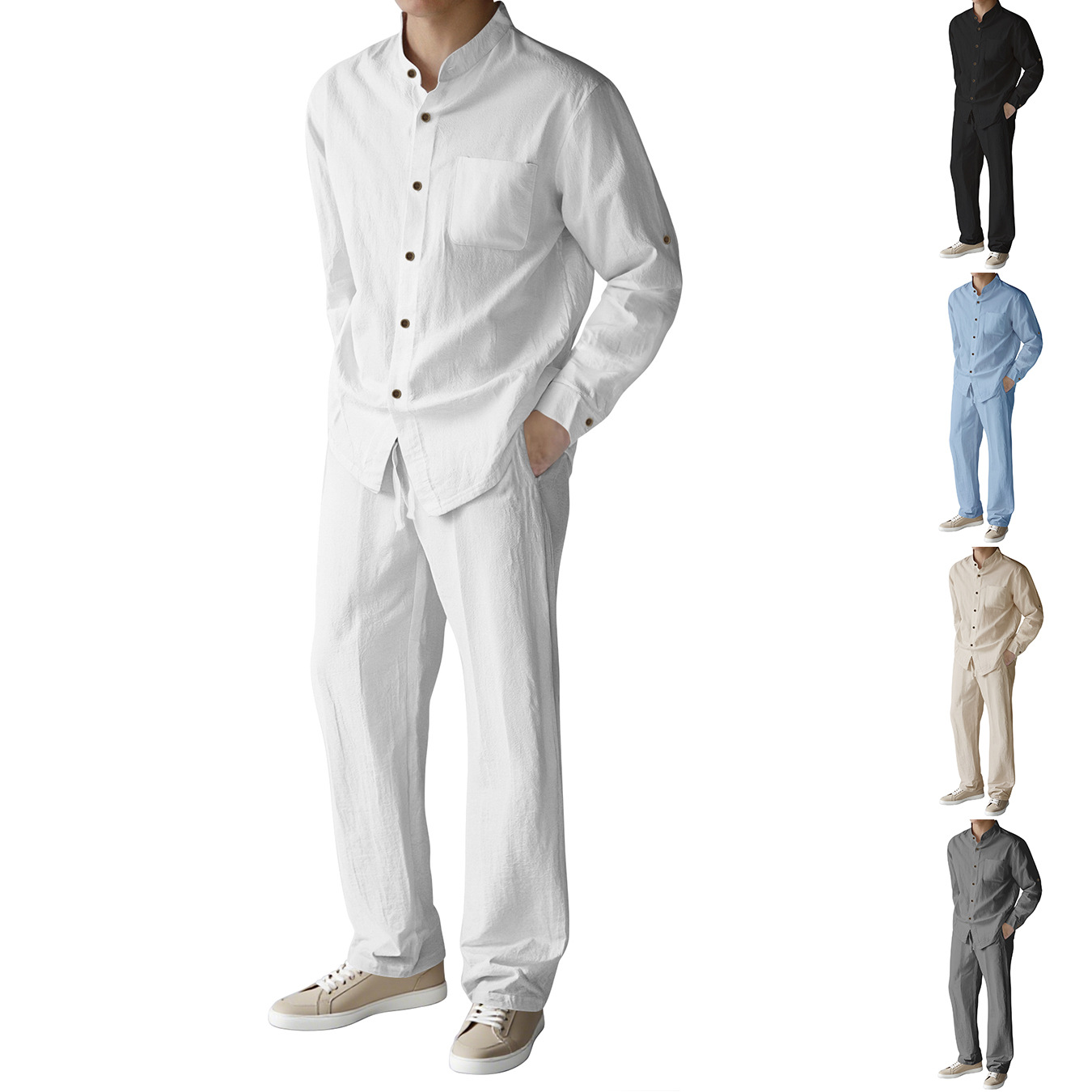 Tento pánský lněný komplet kombinuje lehkost, eleganci a ležérní styl, který se hodí do města, na dovolenou i na volný den.