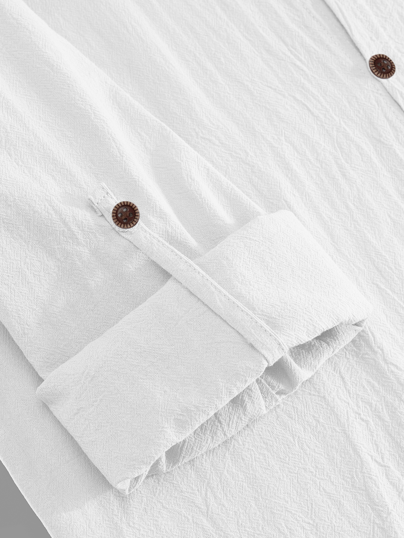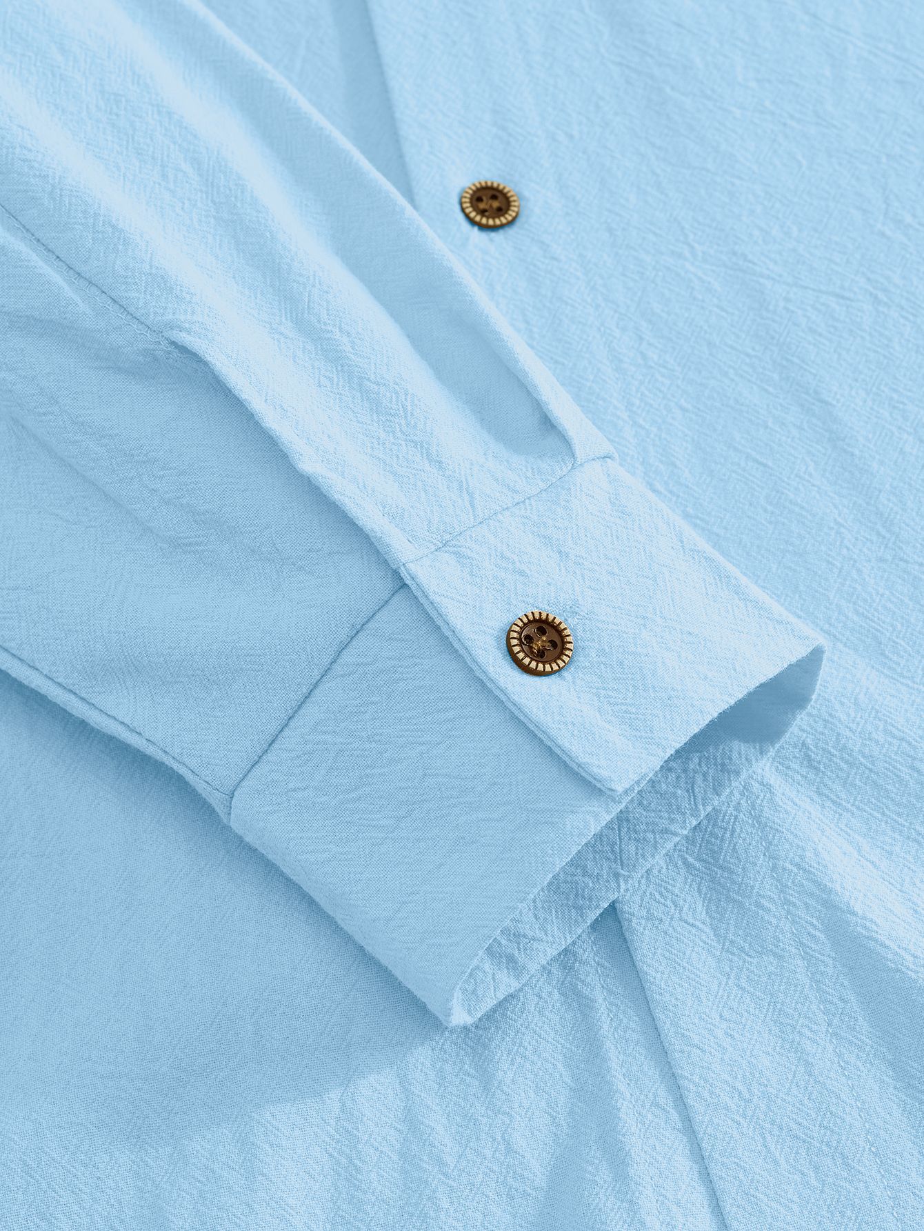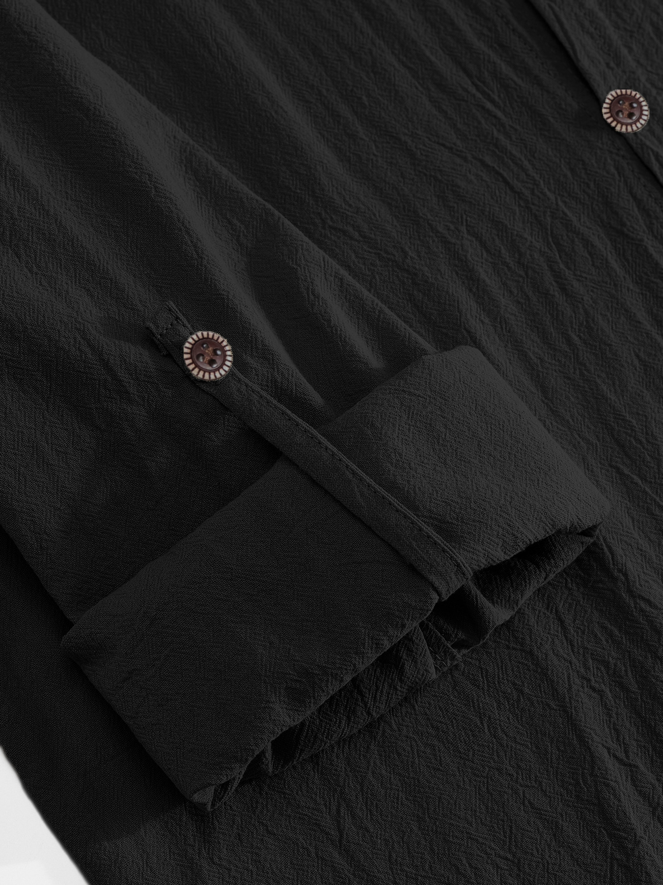 ✅ Elegantní límeček a dlouhý rukáv – působí upraveně, ale stále ležérně